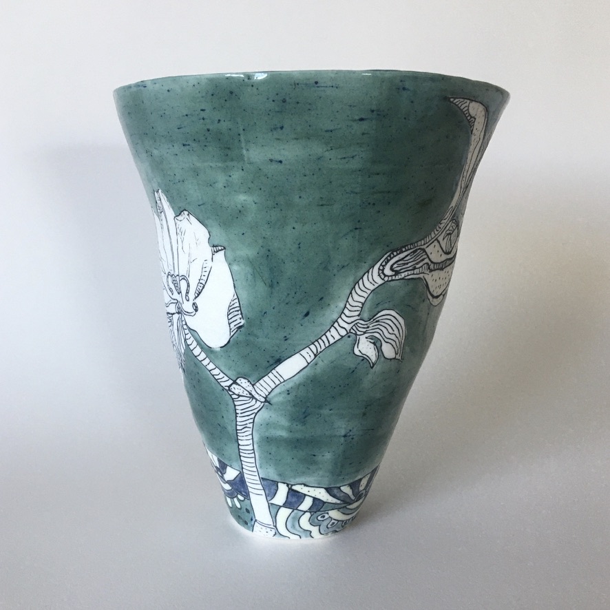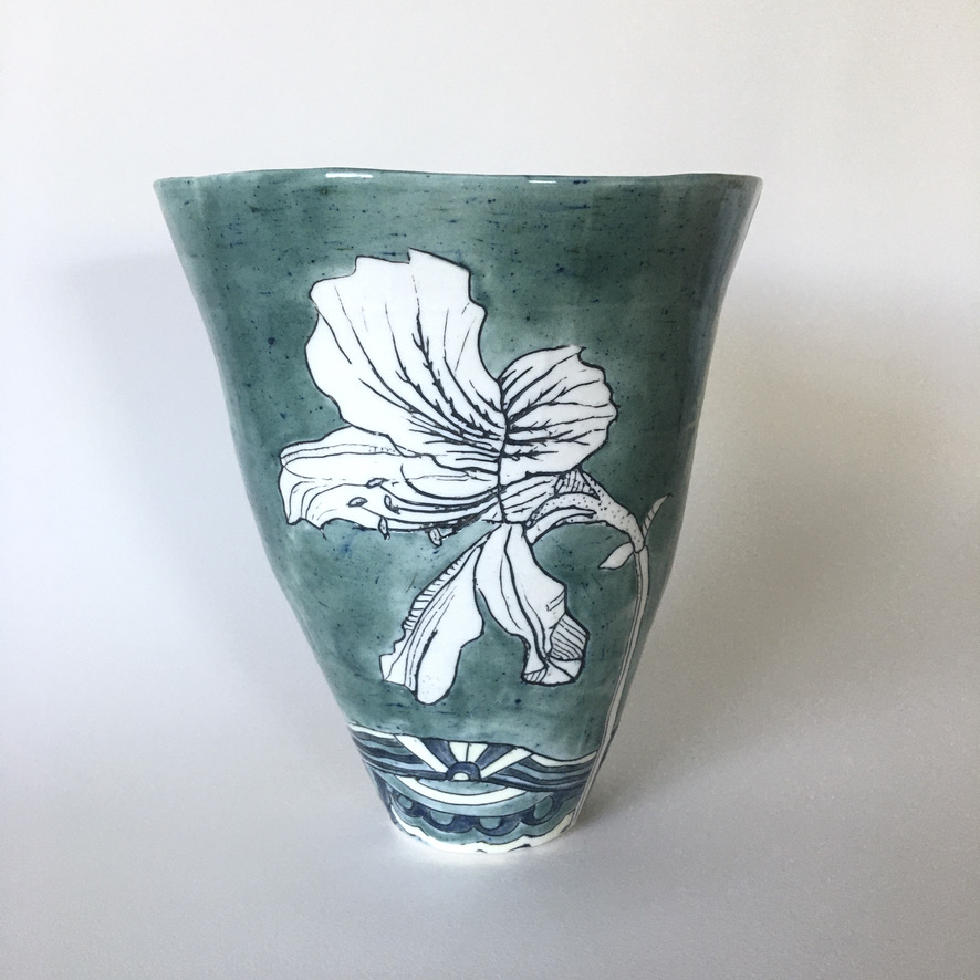 Fynbos flowers make alliances with pollinators – to attract or repel. Here the flower petals reflect a picture of a spider and the style and stamens resemble legs. Wachendorfia paniculata is for good reasons called die spinnekop blom and sometimes the butterfly lily. On the other side is Pelargonium betulinum and on the inside dry osteospermums.