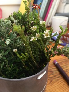 The first Strandveld flower that stopped me in my tracks was the sprawling Indigofera in front of my studio. Seven pinnately arranged leaves decide to drop the 7th leaf for a small purple flower. Another magnificent was James Britannia. He uses 5 orange stripes to divide his petals into five white hearts. I didn’t take too much notice of Phylica ericoides until I saw her winter’s coat of white woolly sepals covering a naked green floret. The last in my bunch was Diosma guthriei. When I crushed its leaves, it smelled of fresh oranges, lemons and naartjies.
