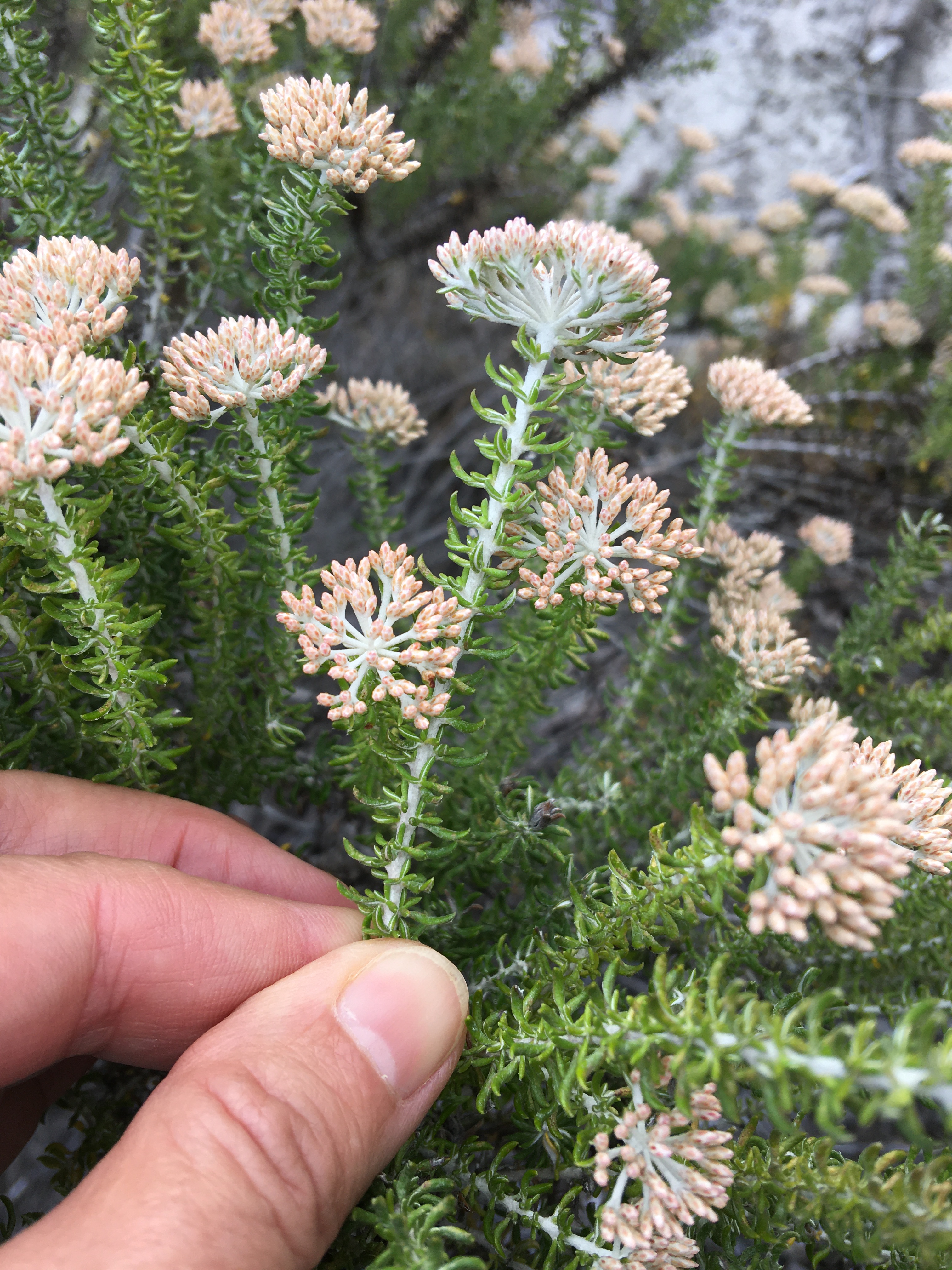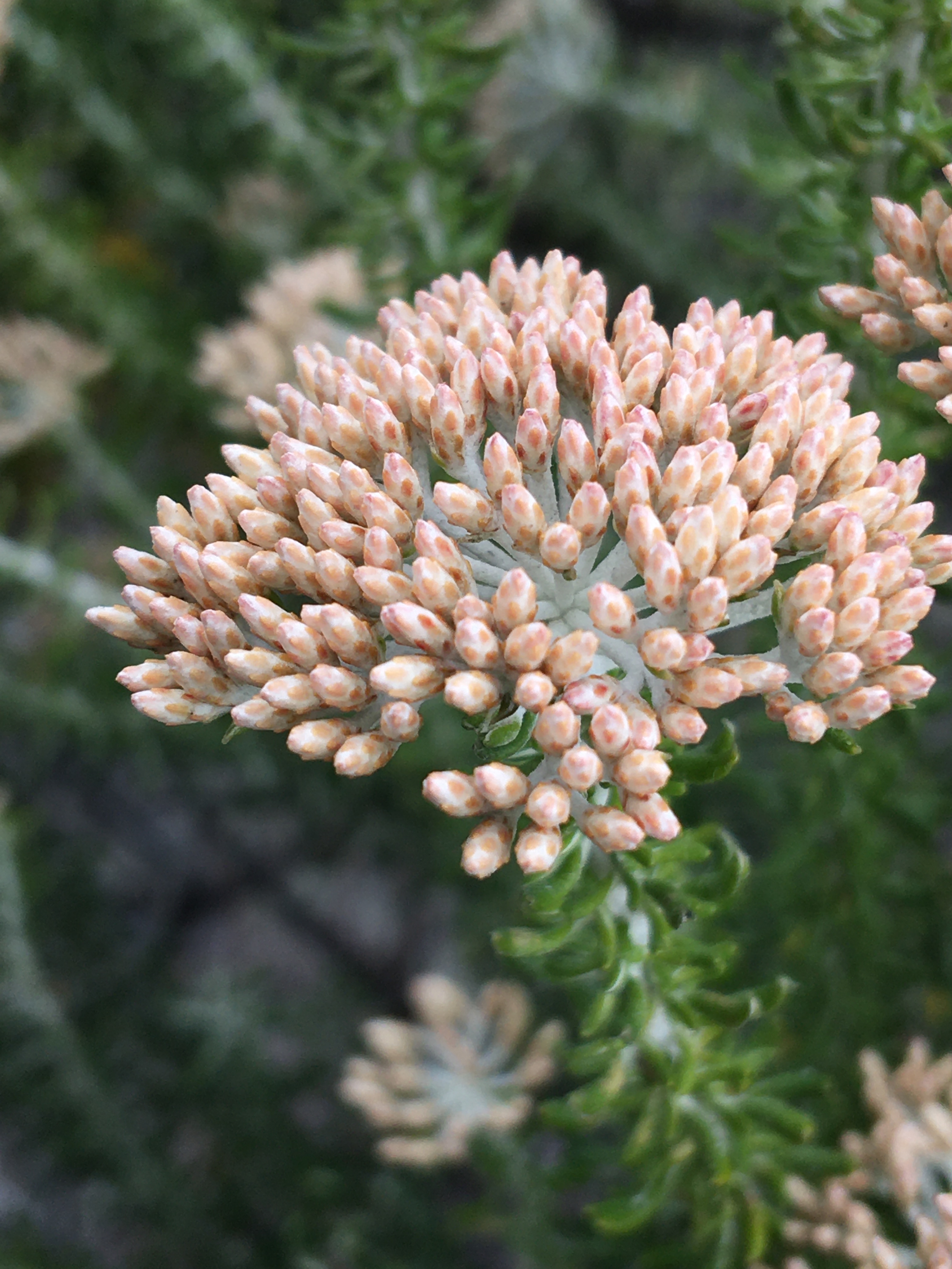Perfectly designed flower heads hold tiny floret groups together. Each floret is set in creamy coloured papery bracts. The leaves are needle like, crooked and curved to catch every possible molecule of moisture.