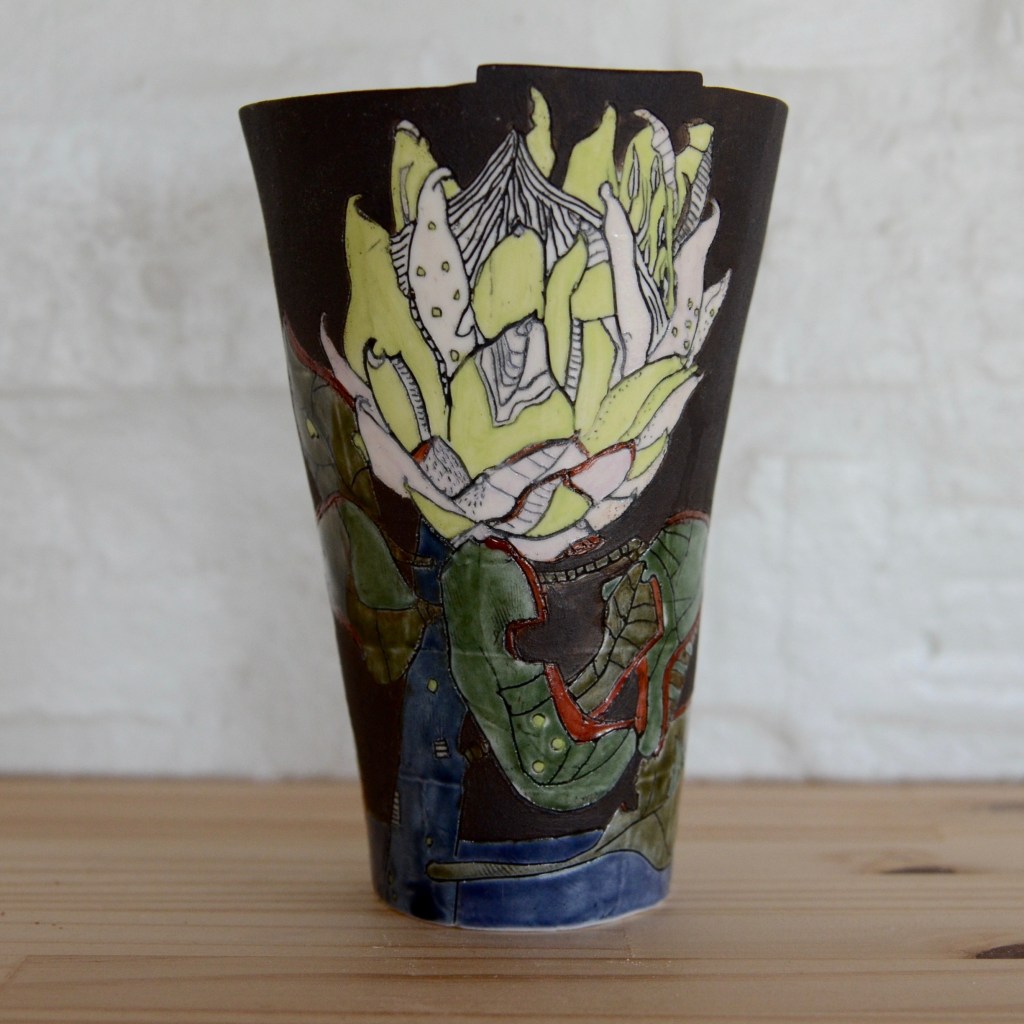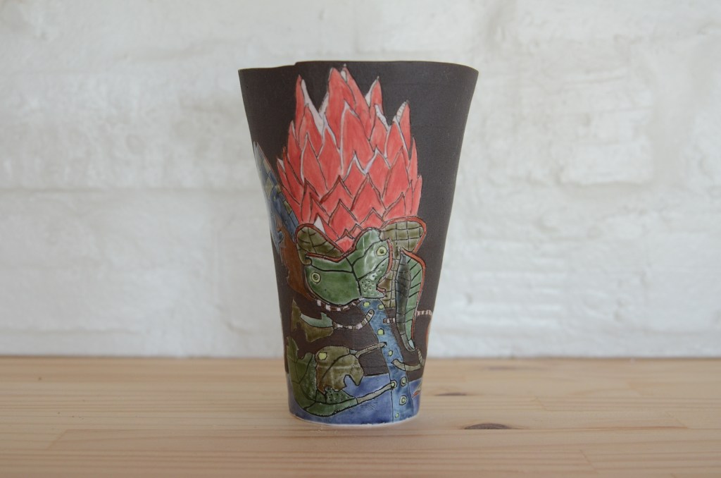 The King Protea flowers in winter. It is bisexual and you may wonder how it works that this flower does not pollinate itself. First, pollen is presented to sunbirds on pollen-presenters. Those are the sharp needle like filaments covered with red pollen at the tips. The pollen smudges onto visiting birds until all the pollen is rubbed off. The tips dry out and in turn can now receive pollen from visiting birds.